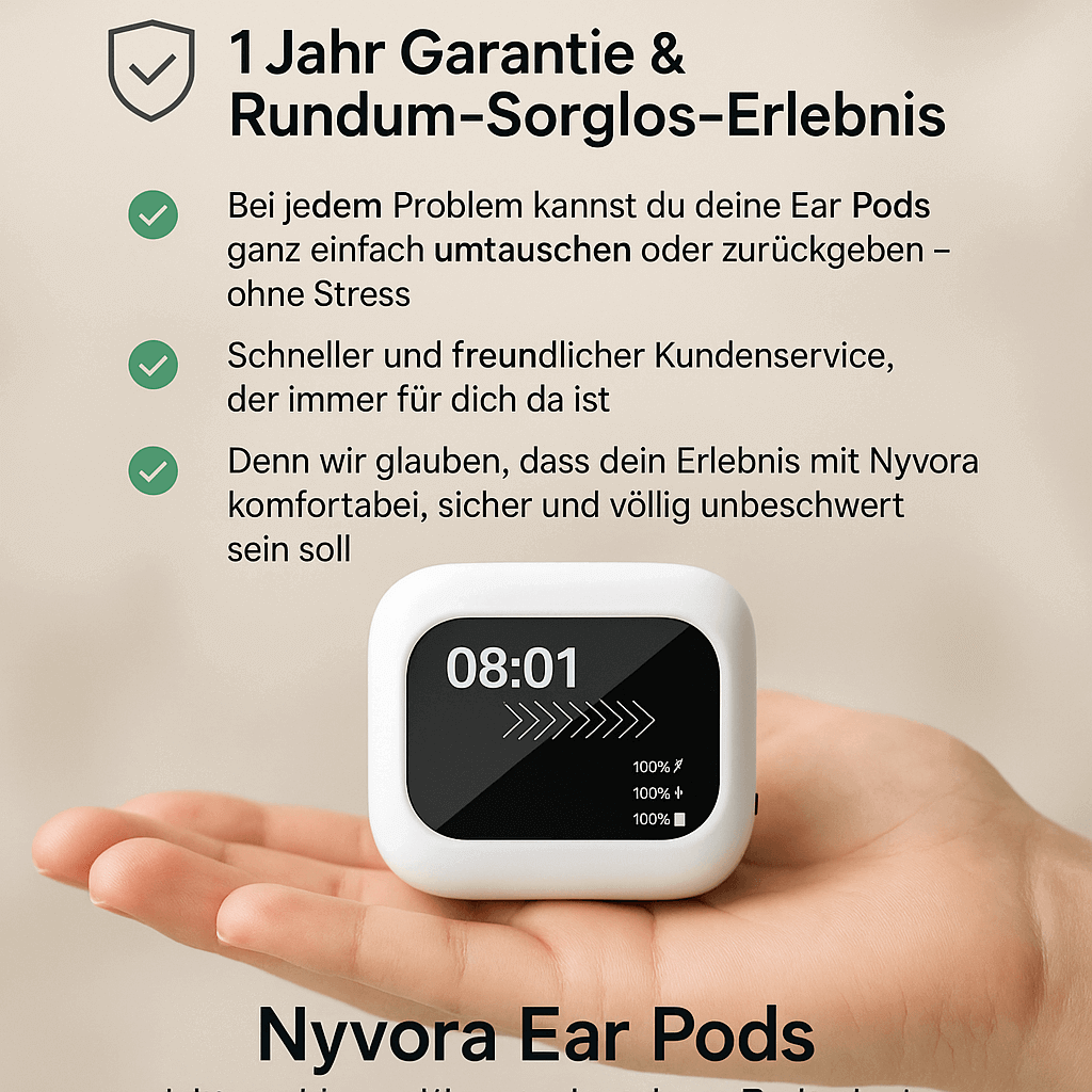 Nyvora Ear Pods ترافقك في كل لحظة بصوت نقي، راحة تامة، وتجربة التوقعات المتوقعة.